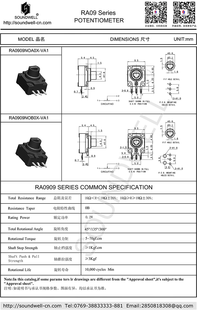 1. Total Resistance Range: 1KΩ<R<1MΩ, ±20%; 1KΩ≥R or R≥1MΩ, ±30%